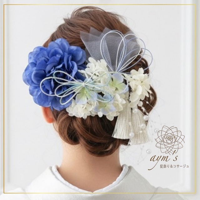aym’s|髪飾り&コサージュ 販売実績 25,000点以上 成人式、卒業式、結婚式といった人生の特別な一日を、 鮮やかな彩りで引き立てる和装髪飾りセットです。 凛とした「ブルー」のダリアをメインに、 瑞々しい紫陽花と清楚なかすみ草を合わせました。 振袖、袴、色打掛など、どんな和装スタイルにも 品よく馴染み、お顔周りを華やかに演出します。 一点ずつ心を込めて、丁寧にお作りしております。 ────────────────────── 【作品の特徴】 ■ 自由自在なヘアアレンジ パーツはすべて独立した「Uピン」または「Iピン」仕様です。 まとめてボリュームを出したり、左右に散らしてナチュラルになど、 ヘアスタイルに合わせて自由にアレンジをお楽しみいただけます。 ■ 高品質な素材を使用 型崩れしにくく、写真映えも美しい高品質なアーティフィシャルフラワーを採用。 紫陽花、かすみ草には質感の良いプリザーブドフラワーを使用しており、高級感のある仕上がりです。 ■ 豊富なカラーオーダー対応 お着物の色味に合わせて、細かなカスタマイズが可能です。 一生に一度の晴れ舞台に、自分だけの特別なセットをお届けします。 ────────────────────── 【カラーオーダーについて】 以下のパーツの色変更を承ります。 ご希望の方はオプションにてカラーオーダーをご選択のうえ、【備考欄】にご希望の色味をご記入ください。 ■ 対象パーツ 1. ダリア 2. 小花 3. タッセル 4. 水引 5. 組紐リボン ※迷われている場合は、お着物の写真を添付してのご相談も大歓迎です! ────────────────────── 【商品詳細・仕様】 ■ 素材: アーティフィシャルフラワー(ダリア、紫陽花)、プリザーブドフラワー(かすみ草)、パール装飾、水引、組紐 ■ 仕様:各パーツ独立(Uピン/Iピン仕立て) ────────────────────── 【ラッピングについて】 ■ 窓付きクラフトボックスラッピング 中身が見えるお洒落な窓付きのクラフトボックスに入れ、リボンを掛けてお届けいたします。 そのままギフトとしてもお渡しいただけるほか、使用後の保管用ケースとしてもご活用いただけます。 ────────────────────── 【発送・納期について】 ■ 納期:ご入金確認後、3〜5日以内に発送いたします。 ■ お急ぎ対応:翌日発送確約(+1,000円)をオプションより選択可能です。 追跡ありの安心な配送方法にてお届けいたします。 ────────────────────── 【ご購入の際の注意点】 ■ ハンドメイド作品のため、お花の配置や形にわずかな個体差がございます。 ■ 繊細な素材です。お取り扱いの際は花の根元をお持ちください。 ■ 安心の交換・返品対応も行っております。詳細はプロフィール欄をご確認ください。 ────────────────────── 【検索用キーワード】 髪飾り/和装/成人式/卒業式/結婚式/前撮り/振袖/袴/色打掛/ダリア/ブルー/青/紫陽花/かすみ草/水引/組紐/タッセル/カラーオーダー/ハンドメイド/ヘアアクセサリー