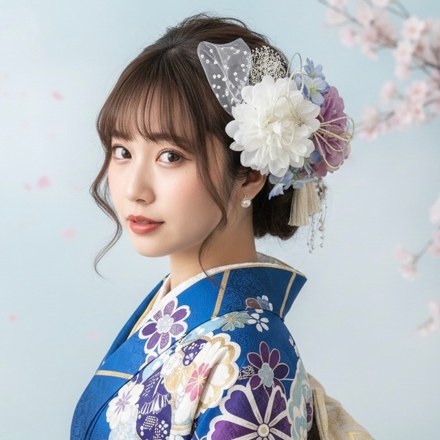 aym’s|髪飾り&コサージュ 販売実績 25,000点以上 成人式や卒業式、結婚式など、人生の特別な節目を彩る 「ブルーダリア×紫陽花×かすみ草」の贅沢な髪飾りセットです。 凛としたブルーのダリアに、繊細で可憐な紫陽花とかすみ草、パールを添えた和装にも洋装にも美しく映える、品格あるデザインに仕上げました。 晴れの日が、より美しく、一生の宝物となる一日となりますように。 一点ずつ心を込めて丁寧にお作りしております。 ────────────────────── 【髪飾りセットの特徴】 ■ アレンジ自由自在 各パーツは独立したUピン・ストレートピン仕様。一箇所にまとめて華やかに、散らしてナチュラルになど、ヘアスタイルに合わせて自由にアレンジ可能です。 ■ カラーオーダー対応 メインのダリアとマムはお好みの色に変更可能。お着物の柄や雰囲気にぴったりの「自分色」にカスタマイズいただけます。 ■ 高品質素材 存在感のある大輪のダリア(アーティフィシャルフラワー)と、本物の質感が美しいプリザーブドフラワーの紫陽花やかすみ草を組み合わせています。 ■ 幅広い用途 成人式(振袖)、卒業式(袴)、結婚式(色打掛・ドレス)、前撮りなど、あらゆるフォーマルシーンに対応します。 ────────────────────── 【セット内容】 ■ メインダリア(花径 約10cm):1点 ■ マム(ポンポンマム):1点 ■ 紫陽花(プリザーブドフラワー):3点 ■ かすみ草(プリザーブドフラワー):2点 ■ パールピン:2点 ◼️シフォンリボンピン:5点 ※各パーツはUピンまたはストレートピン仕様で、簡単に装着いただけます。 ※着脱の際は必ず根本部分を持って着脱してください。 ────────────────────── 【カラーオーダーについて】 以下のパーツの色変更を承ります。お着物の色味に合わせて自由にお選びください。 1. ダリア(メインの大輪花) 2. マム(添え花) ご希望のカラーは、オプションにてカラーオーダーをご選択のうえ、ご購入時の【備考欄】にご希望のカラーをご記入ください。 「着物の色に合わせたい」などのご相談も承っております。お気軽にお問い合わせください。 ────────────────────── 【素材】 アーティフィシャルフラワー(ダリア、マム) プリザーブドフラワー(紫陽花・かすみ草) 装飾パーツ パールガーランド、シフォンリボン 型崩れしにくく、前撮りから当日まで安心してお使いいただける高品質な素材を厳選しています。 ────────────────────── 【取り扱い・保管について】 ■ 着脱の際は必ずピン部分をお持ちください ■ プリザーブドフラワーは非常に繊細です。 花びらに直接触れないようご注意ください ■ 直射日光・高温多湿を避けて保管してください ────────────────────── 【発送・梱包について】 ■ 梱包 形崩れ防止のため、専用のボックスに丁寧に梱包し発送いたします。 ■ 発送 ご入金確認後、3〜5日以内に発送いたします。 ※お急ぎ対応あり(翌日発送確約 1,000円) 宅急便コンパクト(追跡あり)にてお届けいたします。 お急ぎの方はオプションより「翌日発送確約」をご選択ください。 ────────────────────── 【ご購入前にご確認ください】 ハンドメイド作品のため、色味や配置に個体差がございます。 お使いのモニター設定により、実際の色味と異なる場合がございます。 詳細はプロフィールをご確認ください。 ────────────────────── 【検索用キーワード】 髪飾り/成人式/卒業式/結婚式/前撮り/振袖/袴/色打掛/ブルー/ダリア/かすみ草/マム/和装/洋装/ヘアアクセサリー/ハンドメイド/カラーオーダー