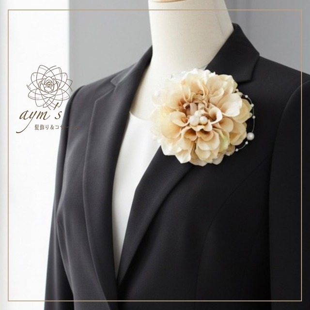 選べる6カラー【入学式・卒業式】アンティークベージュダリアのシンプルコサージュ|フォーマル対応