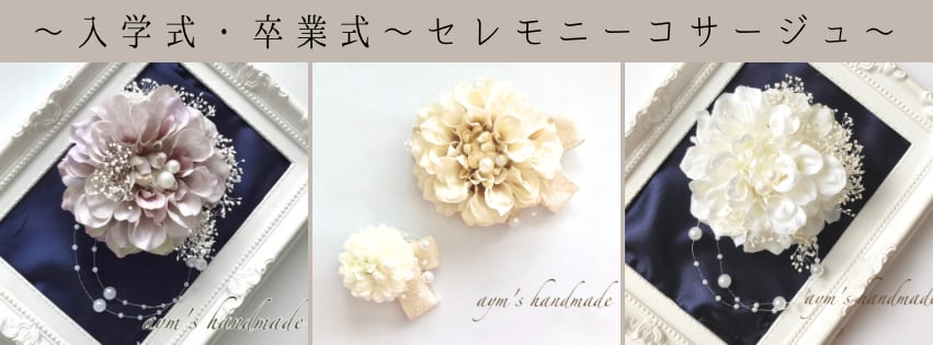 aym’s|髪飾り&コサージュ 販売実績25,000点以上 卒業式・入学式・結婚式・式典など、 大切な節目の日に選ばれてきた 上品で落ち着きのあるセレモニーコサージュです。 主張しすぎず、装いに自然になじむことを大切に、 フォーマルシーンにふさわしいバランスで 一点ずつ丁寧にお作りしております。 式典の日が、 より品よく、心に残る一日となりますように。 ────────────────────── 【選べる6色コサージュ】 シーンやお洋服の色味に合わせて、 お好みのカラーをお選びいただける セレモニー用コサージュです。 卒業式・入学式・結婚式など、 フォーマルな場にふさわしい落ち着いた色合いで、 年齢や立場を問わずお使いいただけます。 ※カラーは商品画像をご確認ください。 ────────────────────── 【カラーについて】 6色の中からお選びいただけます。 ご希望のカラーを、種類よりご選択ください。 ・ラベンダークリーム ・クリームホワイト ・アンティークベージュ ・ホワイト ・ブルー&パープル ・パープルブラック ※色味は画面環境により多少異なって見える場合がございます。 ────────────────────── 【コサージュの特徴】 ・卒業式・入学式・結婚式に対応するフォーマルデザイン ・写真に残っても派手になりすぎない上品な立体感 ・スーツ・ワンピース・和装にも合わせやすい色設計 ・長時間着用しても型崩れしにくい安定感 母としての装い、先生・来賓の方にも 安心してお使いいただけるコサージュです。 ────────────────────── 【仕様】 金具:安全ピン+クリップの2way仕様 (お洋服を傷めにくく、安定して装着できます) ────────────────────── 【デザインの特徴】 ・花径 約10cm ─ 存在感がありながら上品なサイズ感 ・2way仕様 ─ ピン&クリップで洋服にも髪にも使用可能 ・天然かすみ草(プリザーブドフラワー)使用 時間の経過とともに淡く変化する表情も魅力のひとつです ・パールと柔らかな花びらが光を受け、 お顔まわりを優しく明るく見せてくれます ────────────────────── 【取り扱いについて】 ・着脱の際は必ず金具部分をお持ちください ・強い力を加えたり、水濡れにはご注意ください ・直射日光・高温多湿を避けて保管してください ────────────────────── 【発送について】 ご入金確認後、3〜5日以内 に発送いたします。 ※お急ぎ対応あり(翌日発送確約 ¥1,000) 宅急便コンパクト(追跡あり)にて、 丁寧に梱包しお届けいたします。 ────────────────────── 【ご購入前にご確認ください】 ・ハンドメイド作品のため、色味や配置に個体差がございます ・お客様都合(イメージ違い等)による 返品・交換は条件付きで対応しております ・詳細はプロフィールをご確認ください ────────────────────── 【ご相談について】 お洋服や式典の雰囲気に合わせた カラー選びのご相談も承っております。 ご不安な点がございましたら、 ご購入前にお気軽にお問い合わせください。 ────────────────────── コサージュ/卒業式/入学式/結婚式/セレモニー フォーマル/式典/学校行事/ママコーデ
