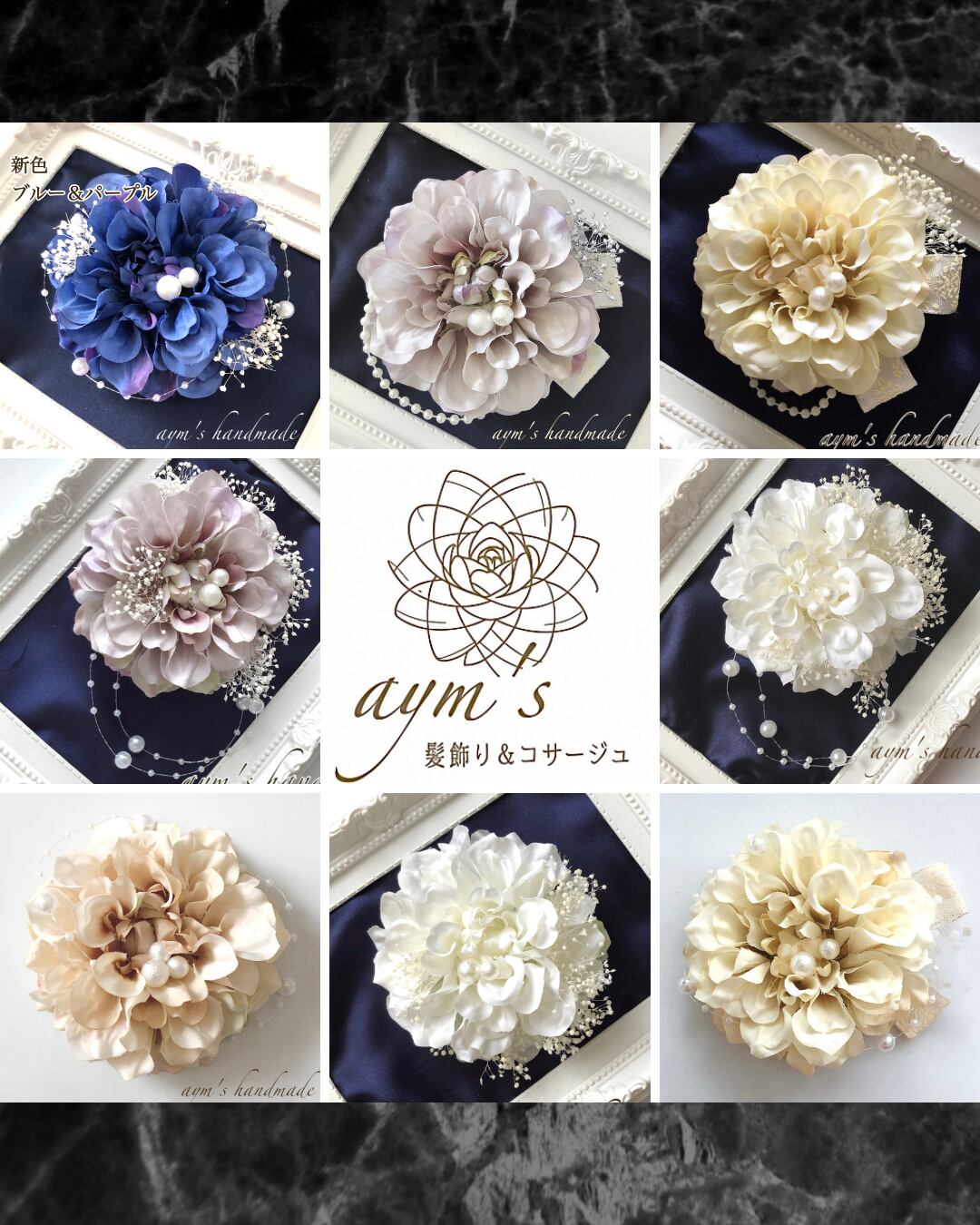 【成人式・結婚式】ダリアの和装髪飾り|ホワイト・若草色オリーブ・レッド|前撮り対応