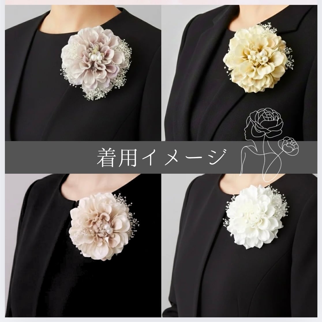 【入学式・卒業式】クリームホワイトダリアの上品なセレモニーコサージュ|パール&かすみ草デザイン|結婚式・七五三 | aym's 髪飾り&コサージュ|成人式・卒業式・結婚式アクセサリー|ayms-shop.com