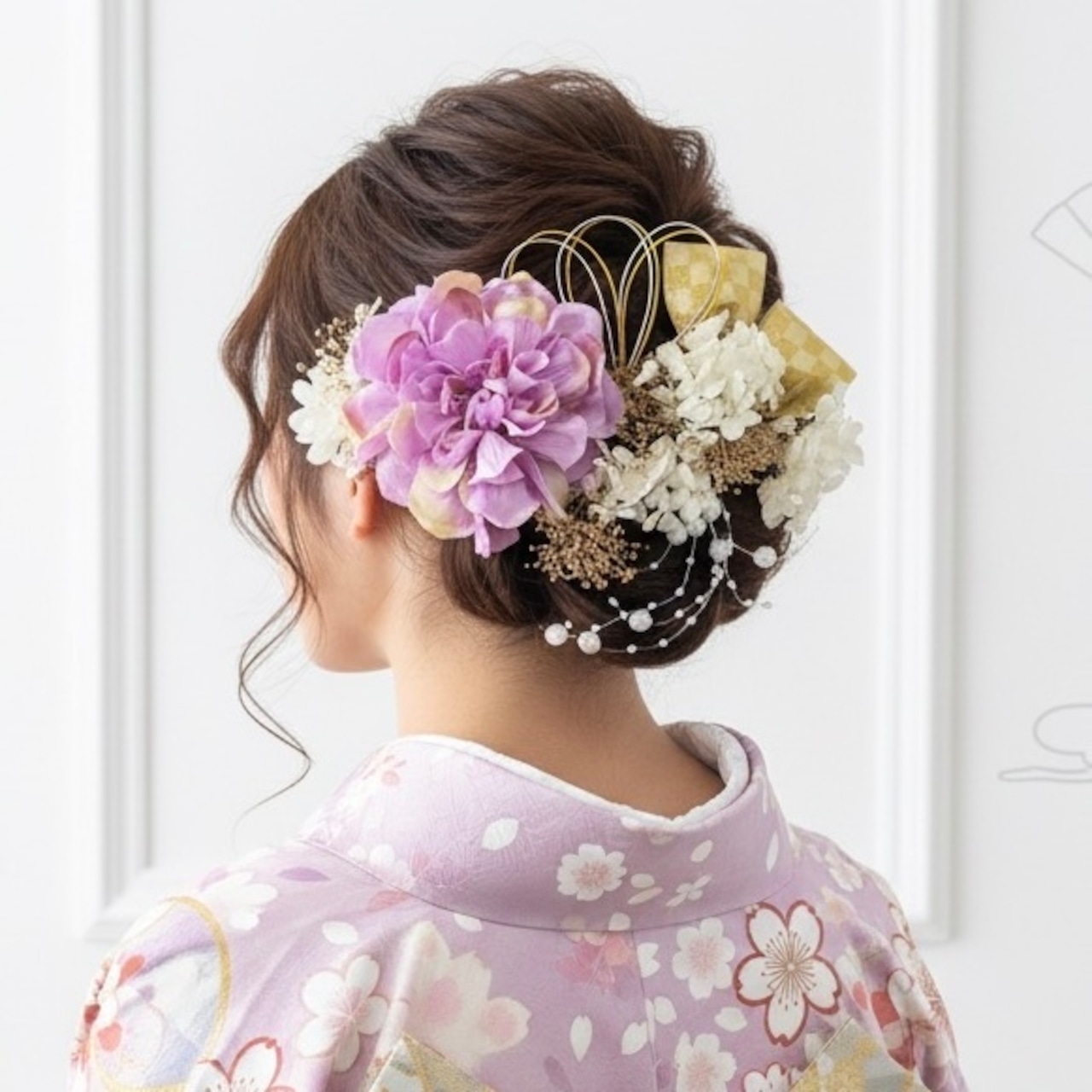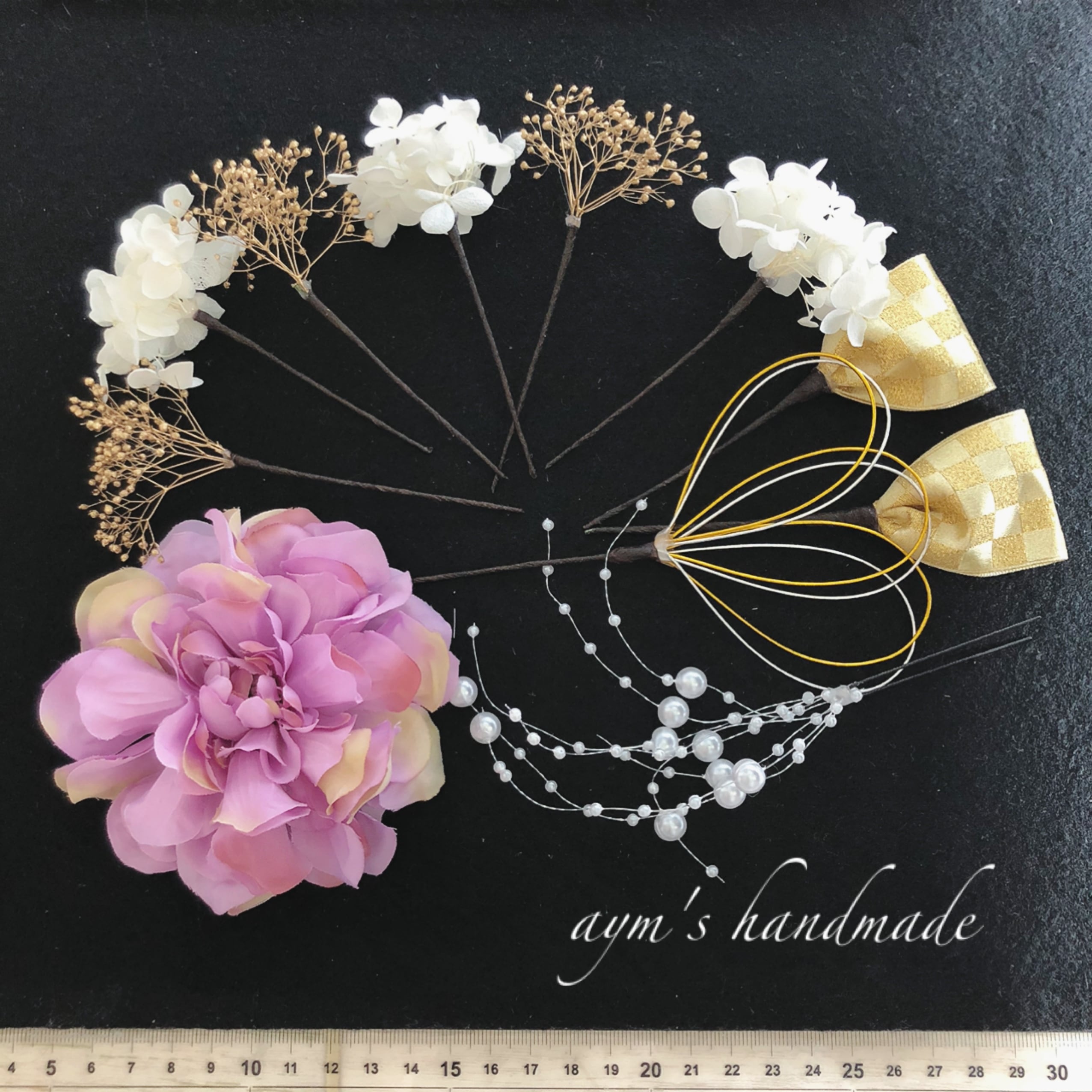 成人式・卒業式に選ばれる パープルダリア×かすみ草✖️パール和装髪飾りセット|振袖・袴・前撮り・ゴールド | aym's 髪飾り&コサージュ|成人式・卒業式・結婚式アクセサリー|ayms-shop.com