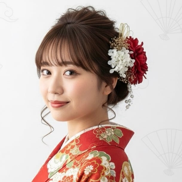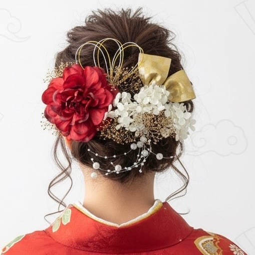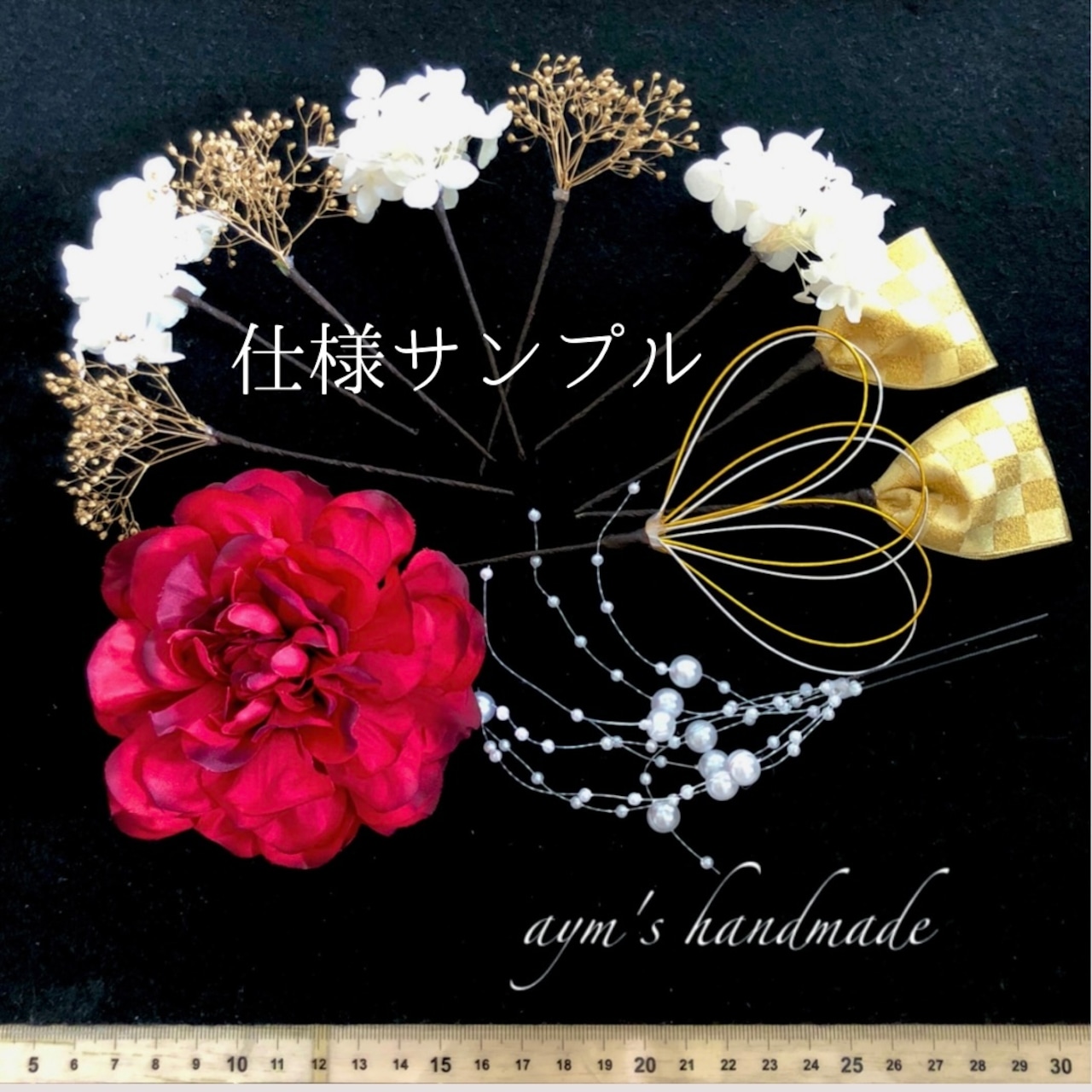 成人式・卒業式に選ばれる レッド 赤ダリア×かすみ草✖️パール和装髪飾りセット|振袖・袴・前撮り・ゴールド | aym's 髪飾り&コサージュ|成人式・卒業式・結婚式アクセサリー|ayms-shop.com