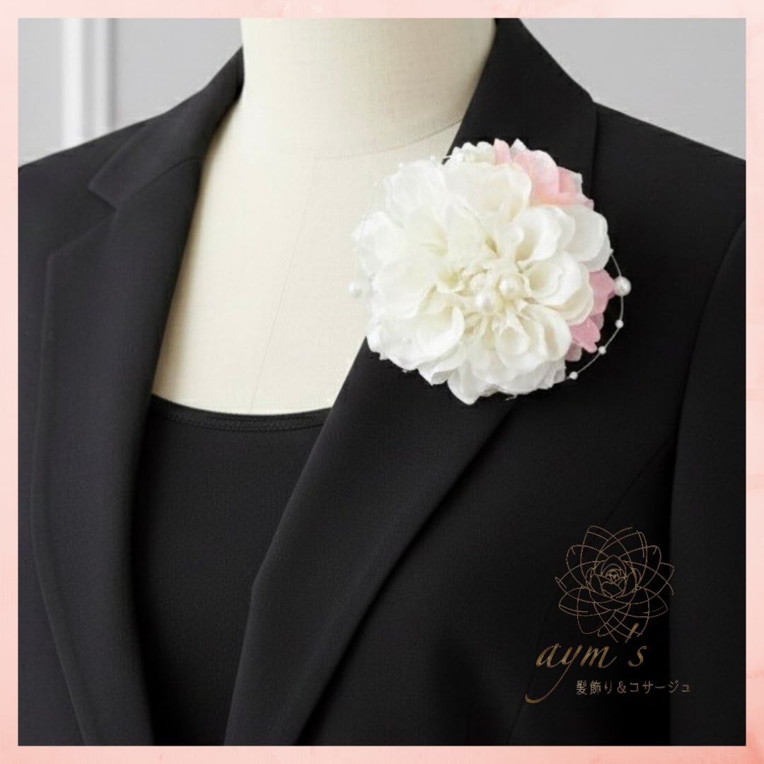【卒業式・入学式・入園式】ホワイトダリア&桜の2wayセレモニーコサージュ|卒園式・結婚式・式典・髪飾りにも | aym's 髪飾り&コサージュ|成人式・卒業式・結婚式アクセサリー|ayms-shop.com