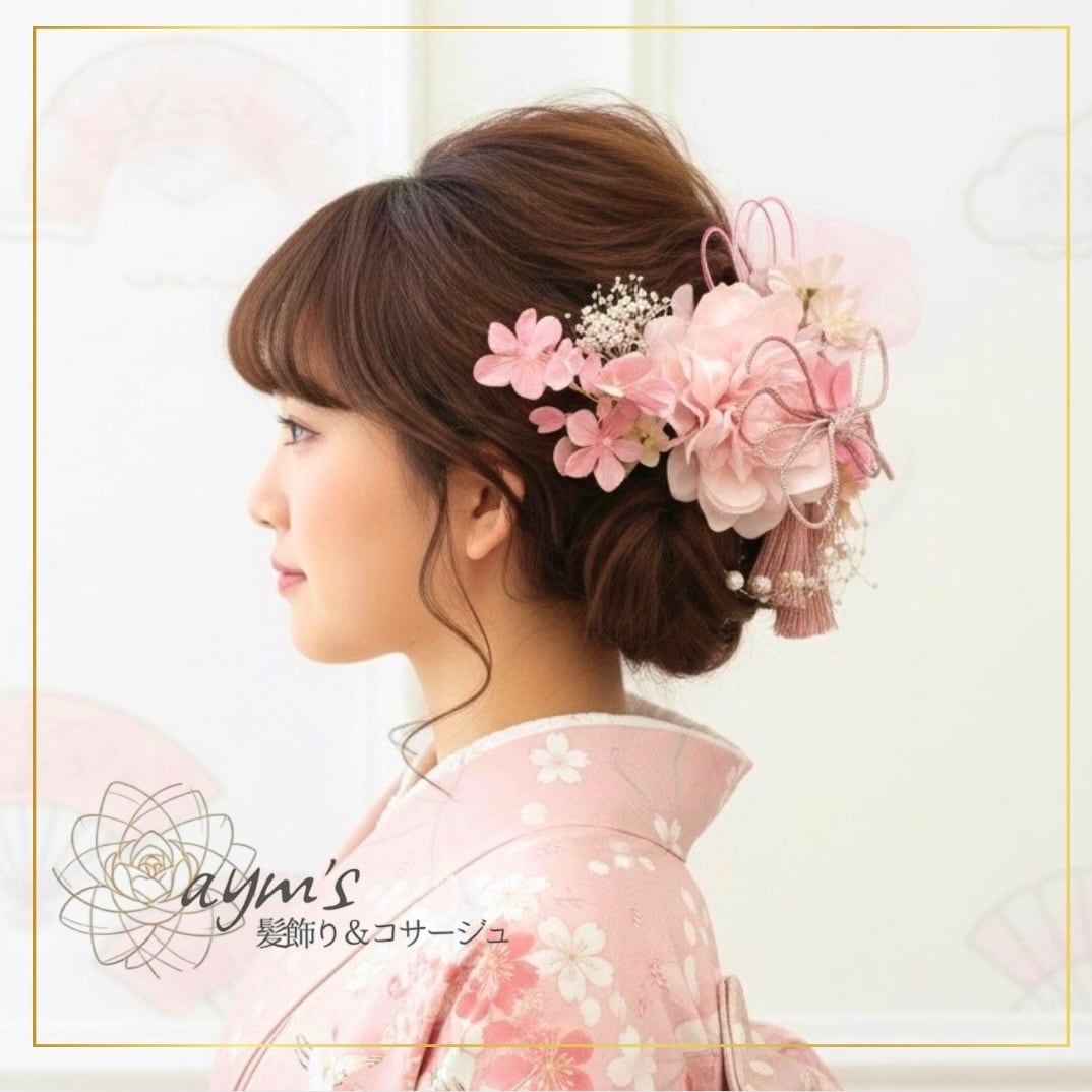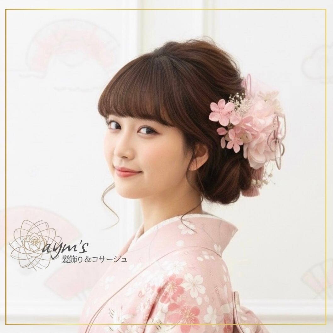 ヘッドドレス/花嫁/成人式/着物/振袖/卒業式/ 和装/七五三/髪飾り/和装小物/結婚式/ヘッドアクセサリー/ヘアパーツ/アーティフィシャルフラワー/春/桜/ピンク/和婚/ヘアアクセサリー