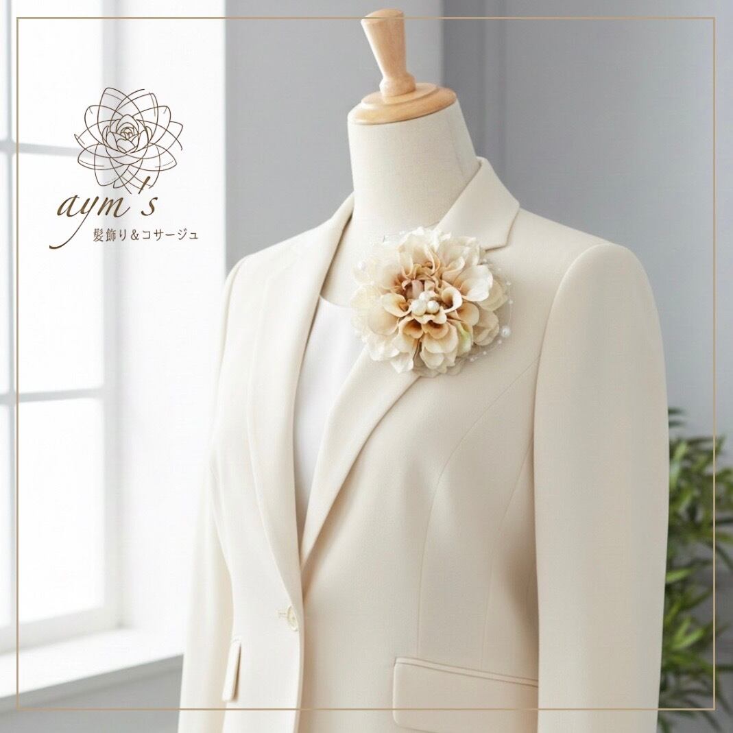 アンティークベージュカラーのコサージュです。
