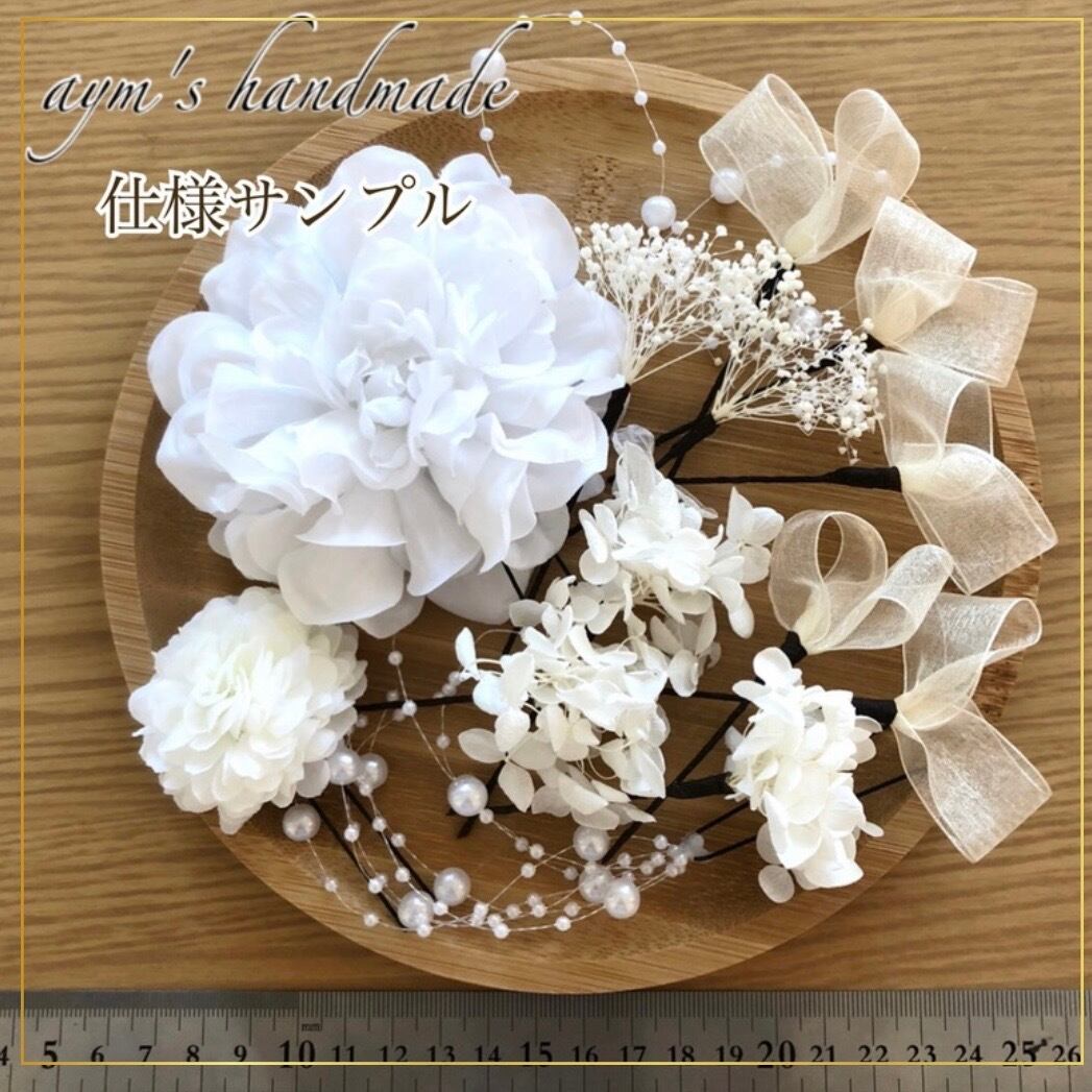 「ブルーダリア×紫陽花×かすみ草」の贅沢な髪飾りセットです。