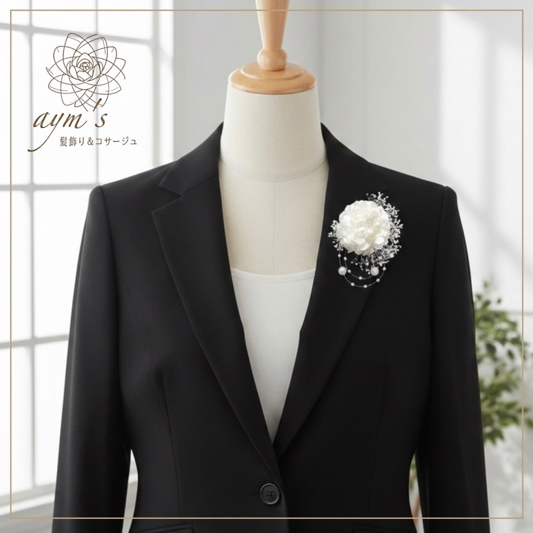 白い小さな上品コサージュ マム&かすみ草|お母様・お子様・先生対応|選べる11色|フォーマルセレモニー|卒業式・卒園式・入学式・入園式・結婚式・髪飾りにも